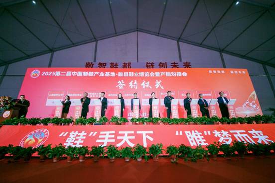開幕式上,商丘市委常委、組織部部長畢啟民宣布:“2025第二屆中國制鞋產(chǎn)業(yè)基地睢縣鞋業(yè)博覽會暨產(chǎn)銷對接會開幕!”睢縣招商單位分別與晉江鞋紡城等客商簽約涉及制鞋、鞋材配套、智能制造等領域的招商引資項目16個,總投資額達108.5億元。同時,睢縣啟動了河南省皮革行業(yè)協(xié)會成立40周年慶典儀式。